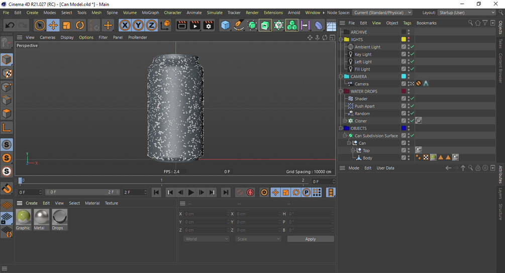 Can 3D Model With Water Drops for Arnold Render